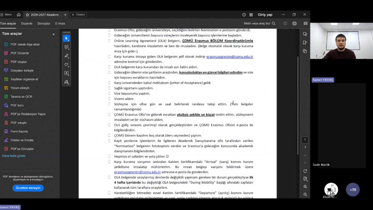 Gerçekleştirilen toplantılarda, hareketlilik sürecine ilişkin akademik, idari ve pratik konular ele alınmış; öğrencilerimizin merak ettikleri sorular yanıtlanmış ve süreç öncesinde ihtiyaç duyacakları temel bilgiler paylaşılmıştır.