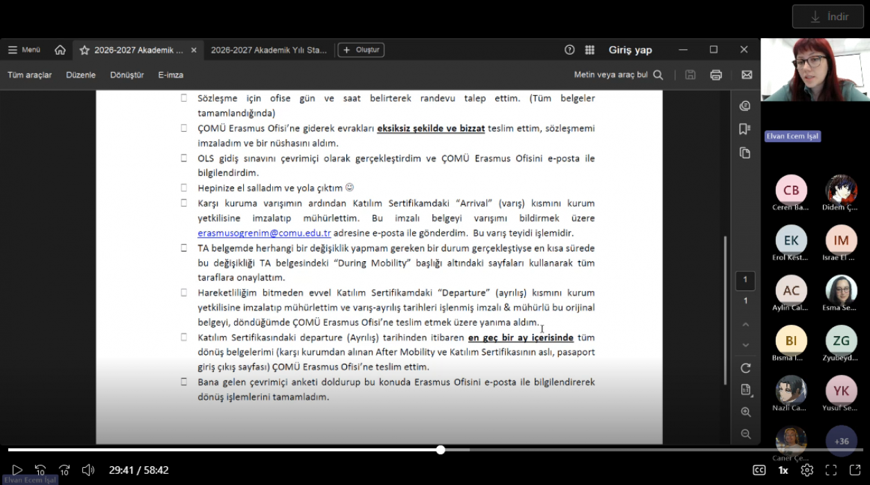 Üniversitemiz Erasmus Ofisi tarafından 2026-2027 akademik yılı öğrenim ve staj hareketliliğinden faydalanmaya hak kazanan öğrencilerimize yönelik bilgilendirme toplantıları düzenlenmiştir.